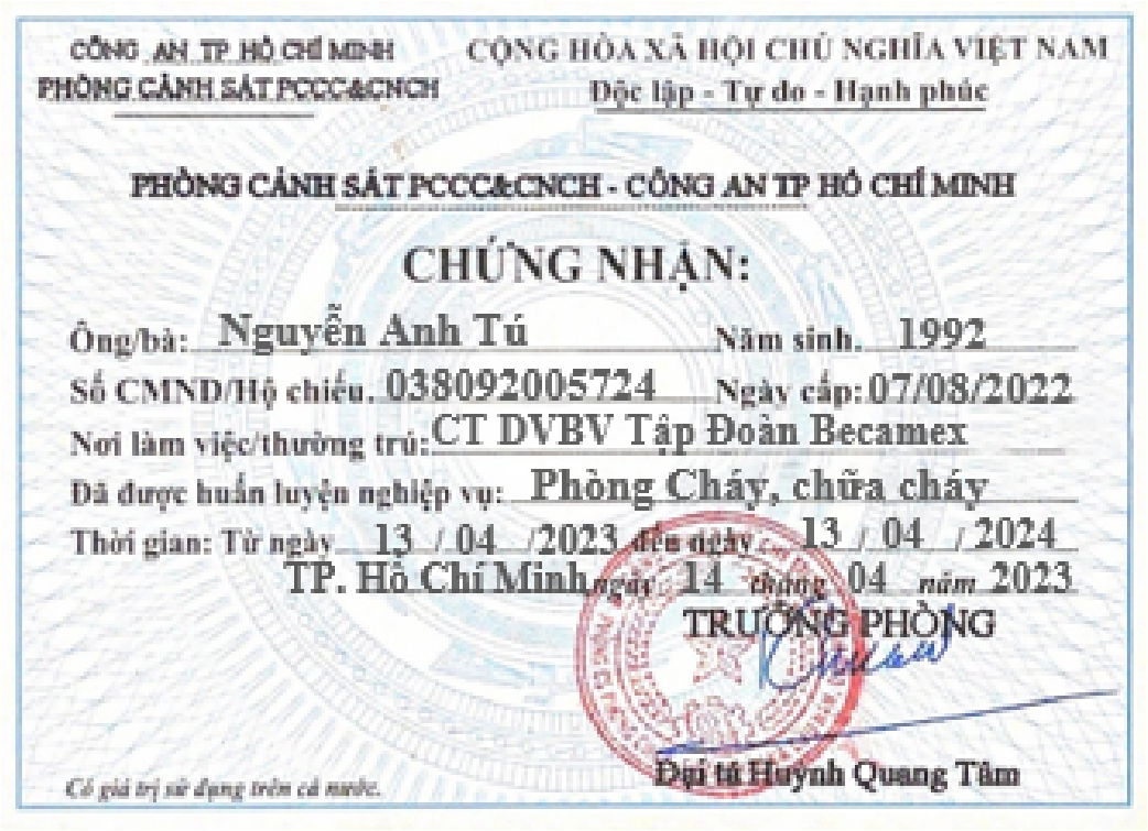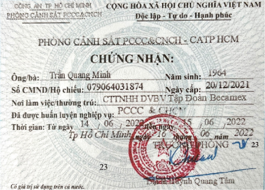 CHỨNG NHẬN NGHIỆP VỤ